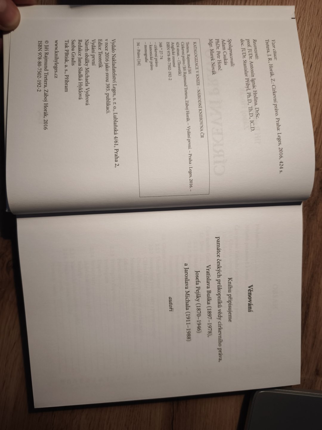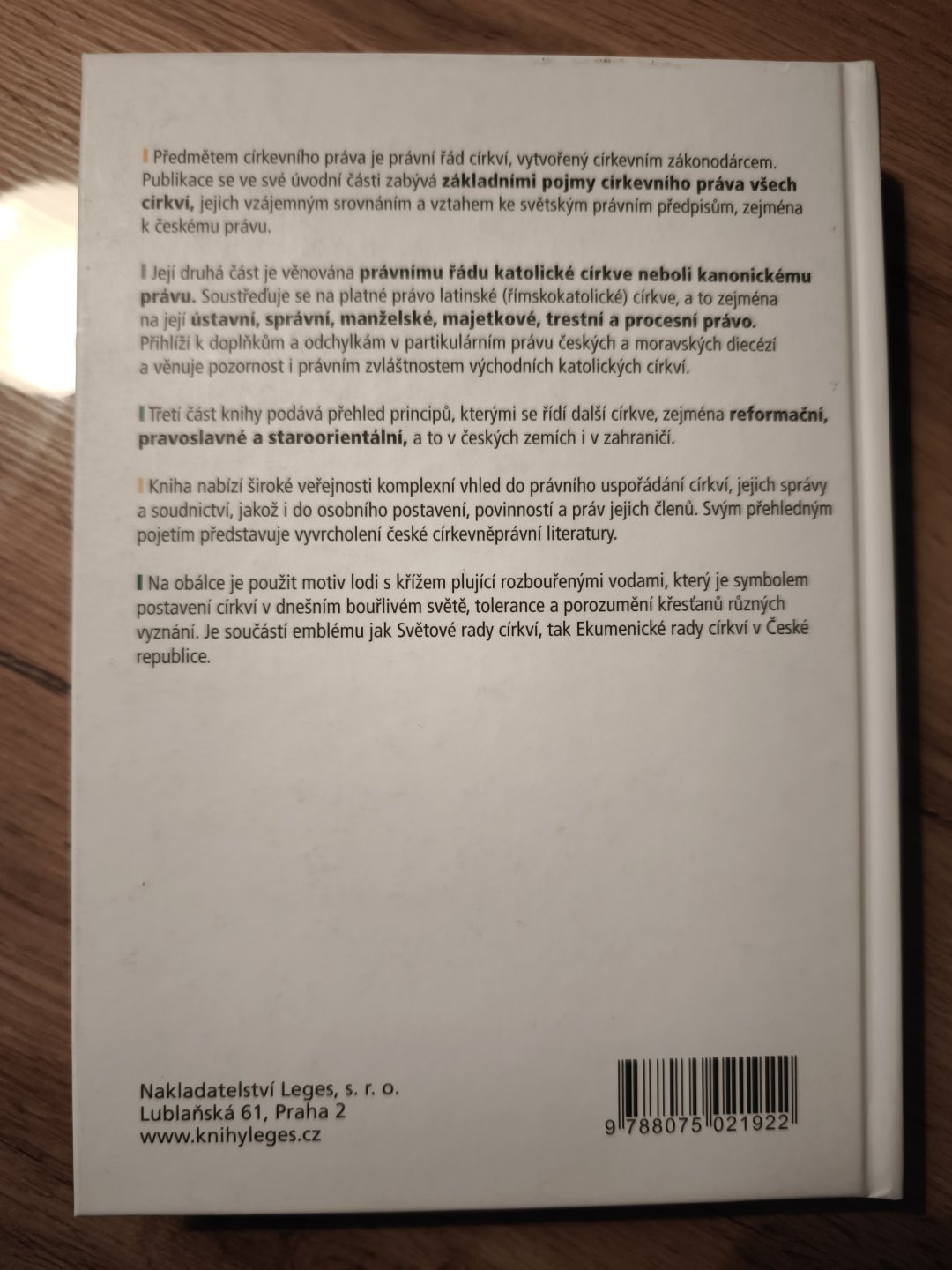 Publikace z oblasti církevního práva zaměřená na právní řád církví a jeho vztah ke světskému právu, zejména k českému právnímu řádu. Věnuje se kanonickému právu katolické církve i základním právním principům reformačních, pravoslavných a staroorientálních církví v ČR i zahraničí.