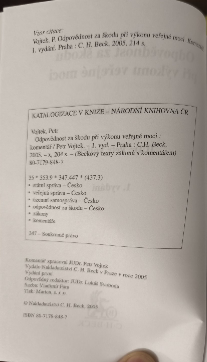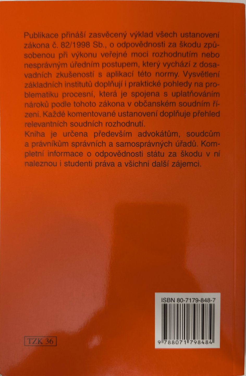 Publikace zaměřená na odpovědnost za škodu při výkonu veřejné moci, zejména na náhradu škody způsobené nezákonným rozhodnutím nebo nesprávným úředním postupem. Pokrývá uplatňování nároků vůči státu a veřejné moci a související procesní otázky.