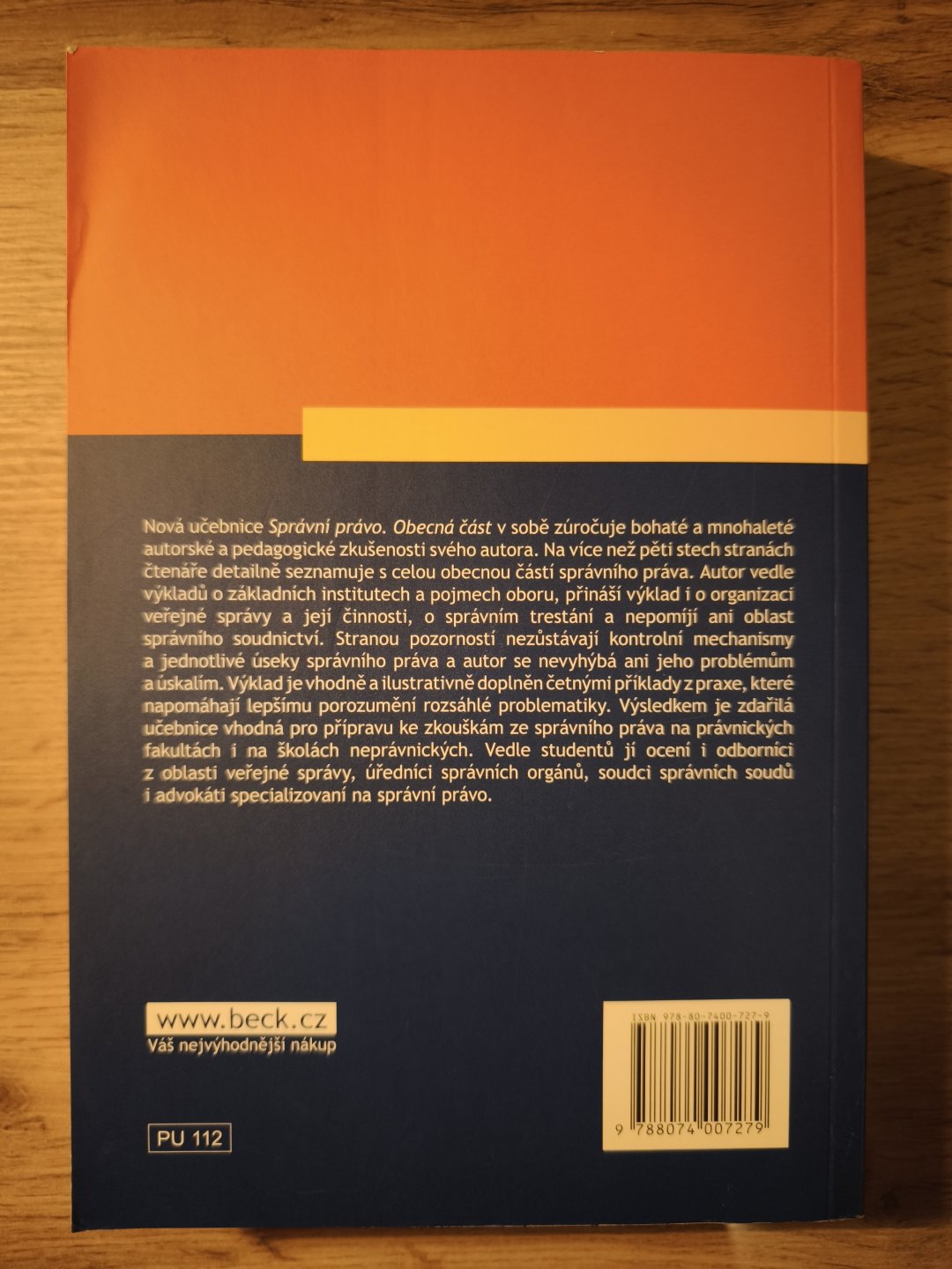 Publikace z oblasti správního práva – obecné části zaměřená na základní instituty správního práva, organizaci a činnost veřejné správy, správní trestání a správní soudnictví. Zachycuje kontrolní mechanismy a vybrané úseky správního práva s využitím příkladů z praxe.