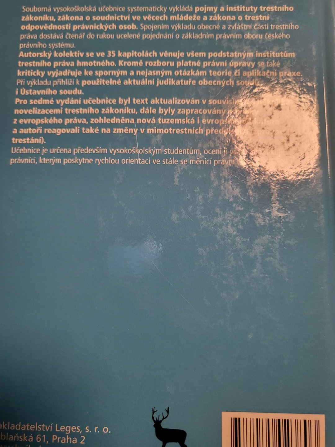 Učebnice z oblasti trestního práva hmotného zahrnující obecnou i zvláštní část trestního práva podle české právní úpravy. Poskytuje ucelený přehled trestných činů, trestní odpovědnosti fyzických i právnických osob a základních institutů trestního práva.