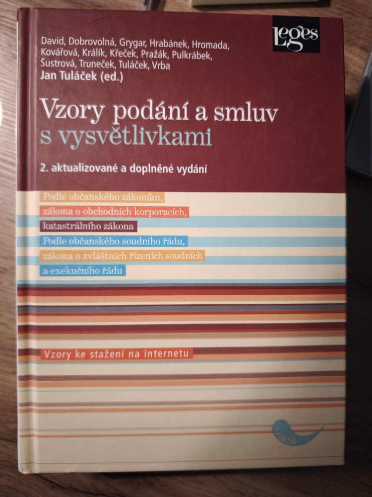 Publikace z oblasti soukromého práva zaměřená na vzory žalob, smluv, podání a notářských zápisů podle nové právní úpravy. Pokrývá zejména rekodifikované občanské právo, včetně oblasti nemovitostí a dědění, a slouží jako praktický přehled typových právních dokumentů.